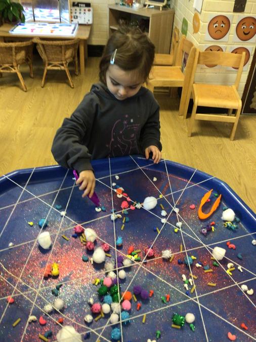 We have a finger gym station permanently in the room where we offer interesting and exciting fine motor activities for the children to access independently.