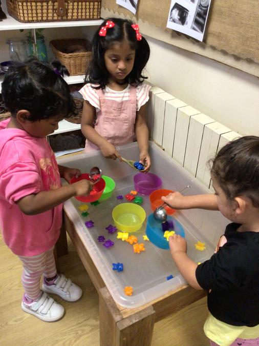 Our core book this week was ‘Brown Bear, Brown Bear, What Can You See?’ We went on a colour hunt and found objects that matched the colours in the story. The children are beginning to name more than just the primary colours.