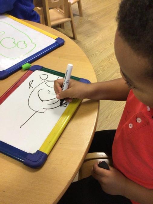 As the children develop their mark making skills we encourage them to think about the marks and maybe give meaning to their creations. The adults in our setting model writing daily and explain what we are doing.