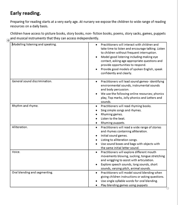 Literacy in Nursery is a combination of early reading, pre writing skills and early phonics.