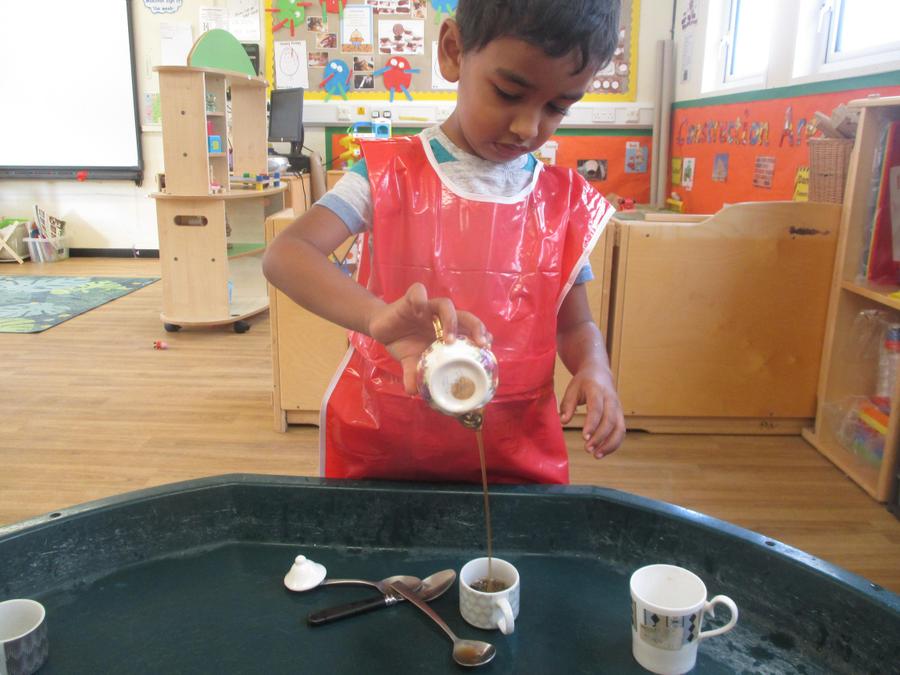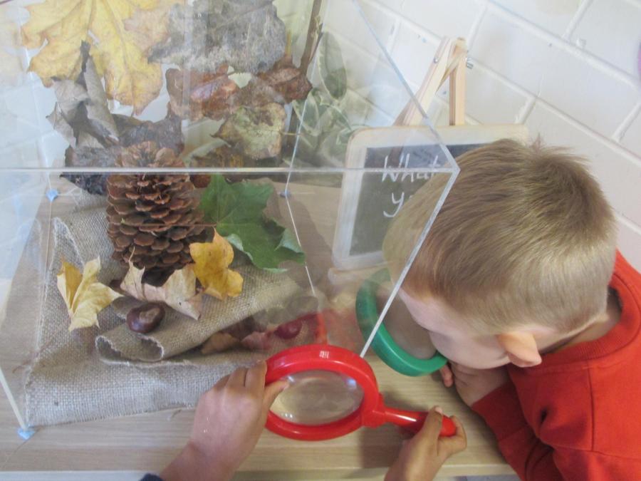 Children learn about the world around them by using all of their senses. At nursery we encourage children to look carefully at things and provide opportunities to experience different textures and smells. We encourage children to be curious about things and to investigate how things work or what will happen if they do a particular thing like pouring more and more water into a container.