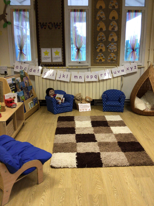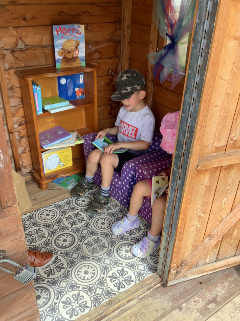 Within our setting we have a quiet, comfortable, reading area for the children to look at a range of fiction and non fiction books, story sacks and story trays. We have a writing area stocked with lots of interesting resources inviting the children to mark make.