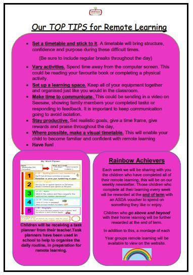 You will also find website links to the National Oak Academy for online learning and BBC Bitesize.