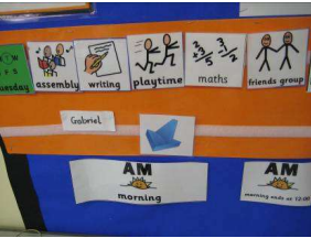 - All classroom use visual timetables and prompts to help support routines and develop clear expectations.